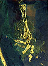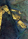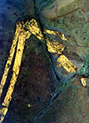Large-format photographs of the surface of Archaeoraptor under visible (rows 1-3) and ultraviolet (rows 4-6) light. Images taken by Lou Mazzatenta for National Geographic Creative in 1999. Click on thumbnails for unreduced images.